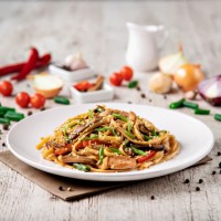 Wok лапша пшеничная с копченой курицей и беконом